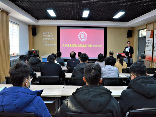 发布会最后,学院执行院长李志合院长讲话。李院长讲到我院一直高度重视大学生创新创业工作,近几年来在各类竞赛中取得了较好成绩,学生双创参与率逐年提升,李院长指出,全体教师要紧紧围绕立德树人根本任务,以全面提高人才培养质量为关键,充分挖掘和利用自身学科专业优势,助力创新创业型人才培养;全院学生要充分借助学校和学院优势资源,积极投身创新创业活动,勇攀科技高峰。