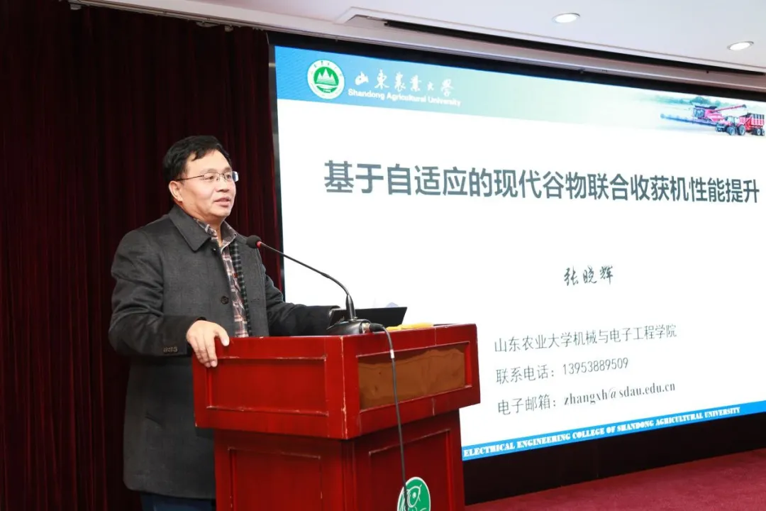 张晓辉教授从目前传统谷物联合收获机普遍存在的动力配置、作业过程等适应性差作为切入点,介绍了现代谷物联合收获机的主要技术特征,通过自适应控制技术手段实现高质高效作业的主要技术途径。