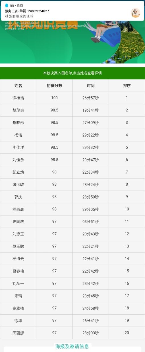 活动伊始,参加活动的同学通过网络平台填写问卷的方式进行全国初赛,试题分为单选题、多选题以及判断题,参赛者完成答题并且得分不少于60分即为及格,可在答题平台下载电子版《2020年第四届全国大学生环保知识竞赛优秀荣誉证书》。进入决赛的同学名单在6月17日进行公示,可在答题页面继续答题来争取更高的奖项和荣誉。此次活动共计1100人参加,20人进入决赛,其余同学获得优秀奖。