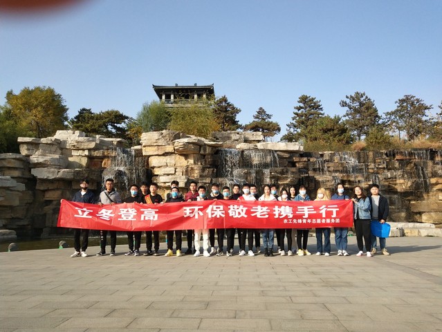 树立尊老,敬老的好风气,共建爱老助老型温暖家园,农工先锋青年志愿者服务为了增强同学们低碳环保意识,共建环保节约型文明家园,同时倡导同学们团于11月7日下午在齐盛湖公园举行以“立冬登高,环保敬老携手行为主题的社会实践活动。此次活动由团长王宁主持,志愿团部分成员参加。