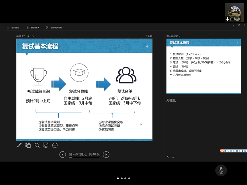 此次线上经验交流会为考研学生提供了一个交流和借鉴学习的平台,缓解了考研同学初次复试的焦虑,为接下来的复试与调剂提供了宝贵的实战经验。希望此次交流会的知识干货与技巧能够为即将到来的复试助力,祝愿考研学子成功上岸,金榜题名。