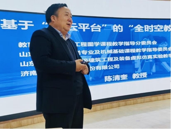3月19日下午,我院邀请山东建筑大学陈清奎教授,在12教114虚拟仿真实验室做专家报告会。本次会议通过教师发展中心向全校广大师生发出邀请。教务处副处长牛学东,农工学院副院长戚彬,及学校相关专业的多位工科师生听取了报告会,会议由戚彬主持。