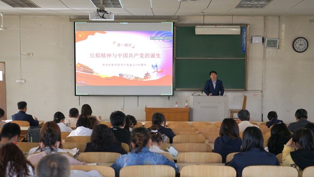 5月6日下午,我院党委举行“光辉的起点:红船精神”专题报告会,学院全体教职工、全体学生党员参会,马克思主义学院王在亮主讲,我院党委副书记戴洁主持会议。