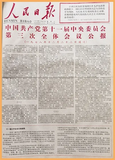 1978年12月24日,《人民日报》第一版刊发党的十一届三中全会公报。资料照片