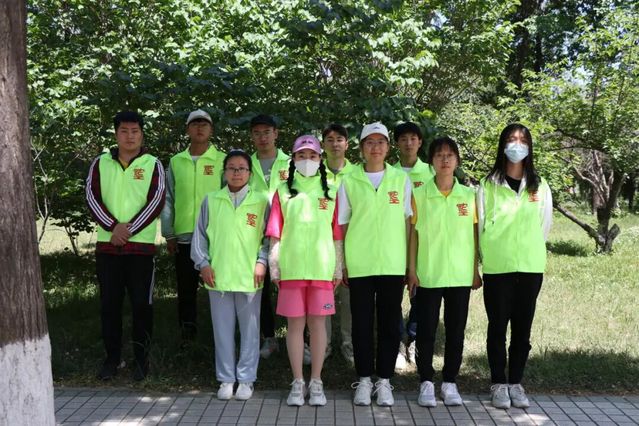 他们身穿荧光绿志愿者马甲,在校园里奔走,为保护学校环境做出一份贡献。他们挽起袖子,手持工具垃圾袋,还有人徒手捡拾垃圾。他们不怕脏、不怕苦,将草丛里、教学楼边、路边垃圾清理干净。每个成员都认真参与,炎炎夏日下,汗水挥洒在校园里。
