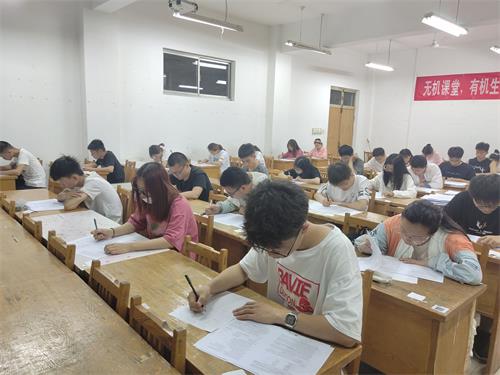 考试开始前,学习部工作人员分别于两个考场进行考前布置。随着考生的陆续到场,工作人员组织签到并指引考生有序就坐。工作人员于考前五分钟分发试卷,明确考场纪律。此次模拟考严格以正式考试流程进行,分为作文写作、听力、综合三个部分。考生拿到试卷后开始作文写作,他们自觉维持考场秩序,无交头接耳,认真写作。半小时后,考生提交作文答题纸。工作人员播放听力录音。听力结束后,各考场考生争分夺秒,仔细审题开始综合部分的作答。