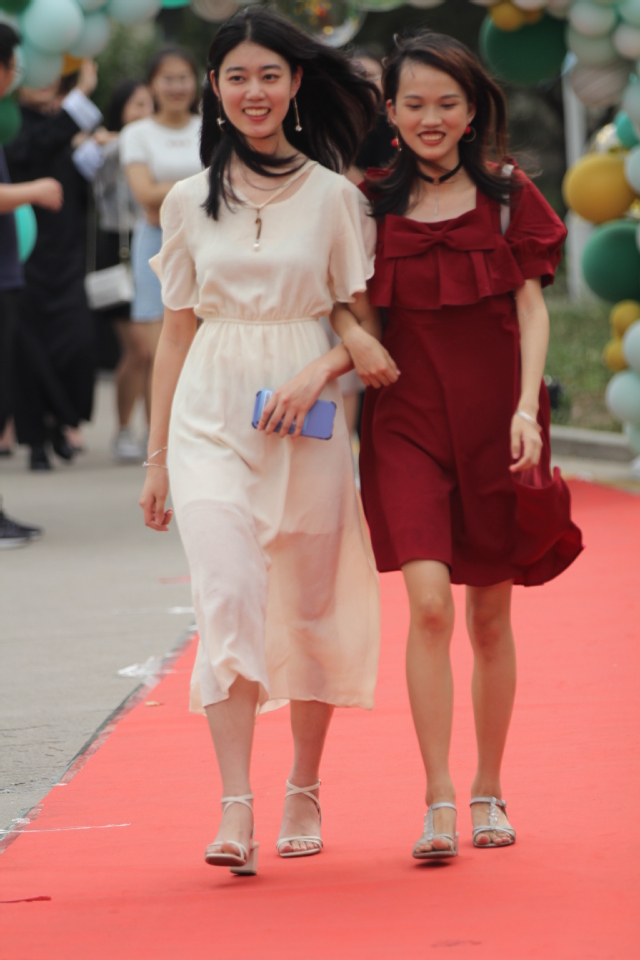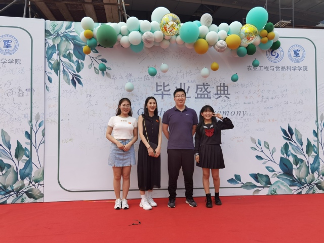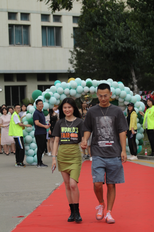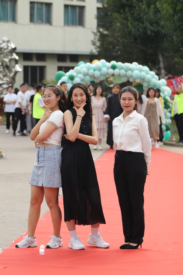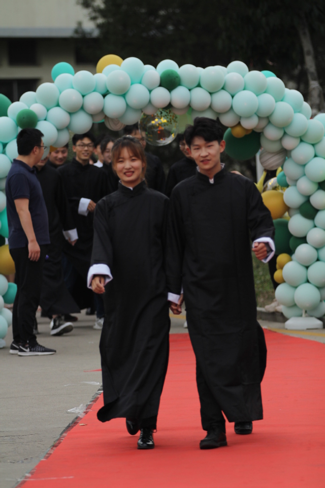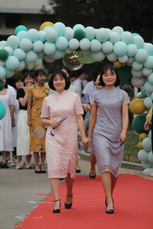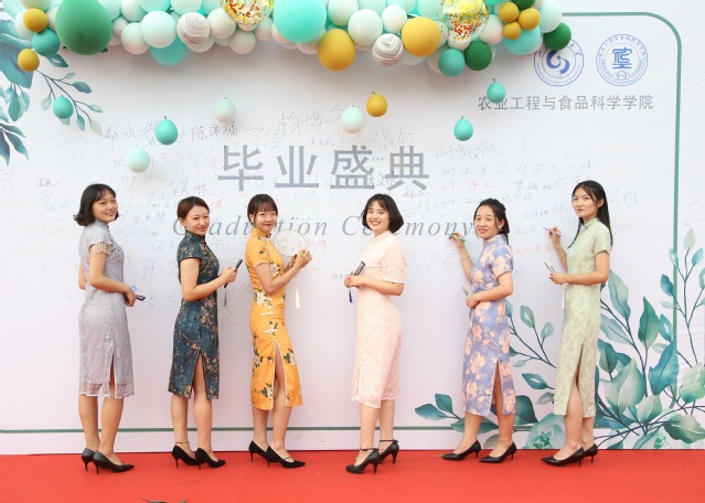 身着靓装,铿锵阔步。伴随激扬的音乐,穿着华彩旗袍、英俊长衫、淡雅唐装等各色打扮的毕业生步伐坚定,翩翩穿过洋溢着“农农”生机的绿色气球、智能农装展板装点的长廊。一场特殊的“红毯秀”上,毕业生走出了“国际范”,绽放了“新光彩”,毕业生在签名墙上依次留下名字与寄语,与最亲切的老师合影留念,接受学弟学妹的掌声与祝福,红毯仪式还通过学院抖音号及易班进行了同步直播。“红毯的尽头不是分离,是通向未来的港口”,毕业生感慨。