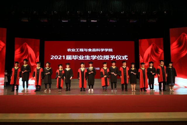学位授予仪式上,李志合宣读《williamhill英国关于2021届毕业生学位授予的决议》,同学院教授委员会主任宋元达、副院长孙霞、副院长戚彬、农机系主任韩鑫、可再生能源工程系主任付鹏、食品科学与工程系主任郭衍银、工业设计系主任娄轲,为毕业生授予学位,扶正流苏并逐一合影留念。
