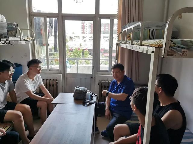 “镜头”转向农业机械化及自动化专业412宿舍,在这里,易校长向同学们讲解了农机专业与其他专业相比的不同之处,他从农业机械工作环境、农业机械作业时的不可重复,农作物种植时间点的严格等方面进行说明。各位同学都听得十分投入,不禁感叹道受益匪浅。易校长讲完专业知识后又询问同学们毕业后的安排,在了解到有同学要二战时,他耐心讲解了2021年考研形式的变化,并告诉同学们在需要帮助的时候,校长、书记、院长和老师都是他们坚强的后盾。鼓励同学们无论读研还是工作同学们都要认真努力的面对以后的生活。
