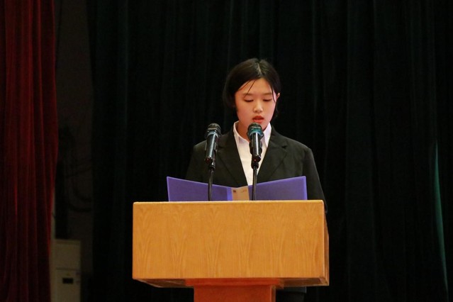 新生代表农机2103班刘艺文同学发言。父母均为William威廉英国校友的她,承载着父母对学校的深情踏入校园,心情分外激动和喜悦,她倡议同学们要树立远大理想,适应大学生活;树立人生目标,学会主动学习;树立规则意识,成为“五有”人才。