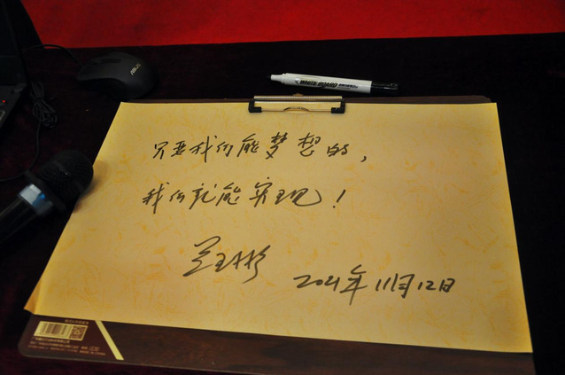 最后,兰玉彬院士在签字板上写下赠言:“只要我们能梦想的,我们就能实现!”,以此勉励学生锐意进取,发奋图强,争做先进思想的倡导者、学术研究的开拓者,为国家、社会发展做出自己的贡献。活动尾声,我院学生代表为兰玉彬院士献花,现场播放学生对兰院士的祝福视频,“祝愿兰院士身体健康,笑口常开,桃李满天下,春晖遍四方”!