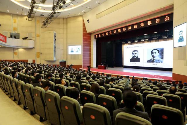 10月20日上午,学校在大学生艺术中心礼堂举行党史专题宣讲暨形势政策报告会,淄博市委副书记、淄博市人民政府市长、市政府党组书记马晓磊作专题宣讲报告。校党委书记吕传毅主持报告会,校党委领导班子成员胡兴禹、邓昌亮、王立斌、苏守波、张思灵,党史学习教育领导小组成员,各学院党委、党总支书记、分管学生工作副书记,青年教师代表和学生代表,淄博市政府秘书长宗志坚,马晓磊所在的市政府办公室机关第一党支部全体党员参加报告会。