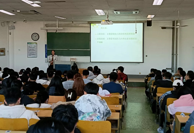 培训围绕自我发展和人际交往两个重点展开,王素霞老师从如何应对压力、如何找到努力方向、关于交往理性认识三个方面为同学们进行讲解。她表示,无论是人际交往还是自我发展,落脚点始终是自己,即学生自我是决定自身发展的主体。紧接着,王素霞为同学们阐述压力的作用,让同学们明白压力的两面性,与此同时,她给同学们提供了面对压力时的应对策略,让同学们遇到压力时有法可寻、有计可依。此外,王素霞老师从舍友关系和恋爱关系、舍友关系和恋爱关系中常出现的问题、如何处好关系、如何做到智慧表达、为什么要谈恋爱、如何应对失恋六个方面对关于交往的理性认识进行阐述。最后,王素霞老师从自身经历谈起,为同学们点明如何处理好人际交往关系。她告诉在座同学们只有降低期待,才会发现生活中更多的快乐;占据主动,不受制于人,才能做回自己;享受快乐,才能保持反思;学会站在他人的角度思考,才能划清底线;清楚自身的底线,尊重他人的底线,最终形成良性互动。