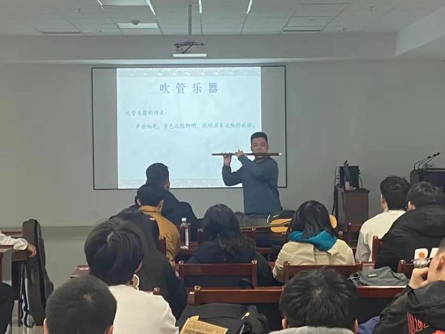 贾剑蕾从中国民族器乐的概念、中国民族器乐的分类方法、中国民族乐器介绍与欣赏三个方面进行了讲述。讲座中,贾老师热情与学生互动交流,为学生详细介绍了中国民族乐器的特点与风格,以一曲深情悠远的古琴独奏掀起讲座高潮。来自音乐学院民族乐器专业的同学还现场为大家倾情演奏了阮、长笛、笙、唢呐等民族乐器的经典曲目,现场爆发出阵阵掌声。本次赏析课让同学们对中国民族器乐有了比较深入的认识和体悟,提升了同学们对中国民族器乐的鉴赏能力。