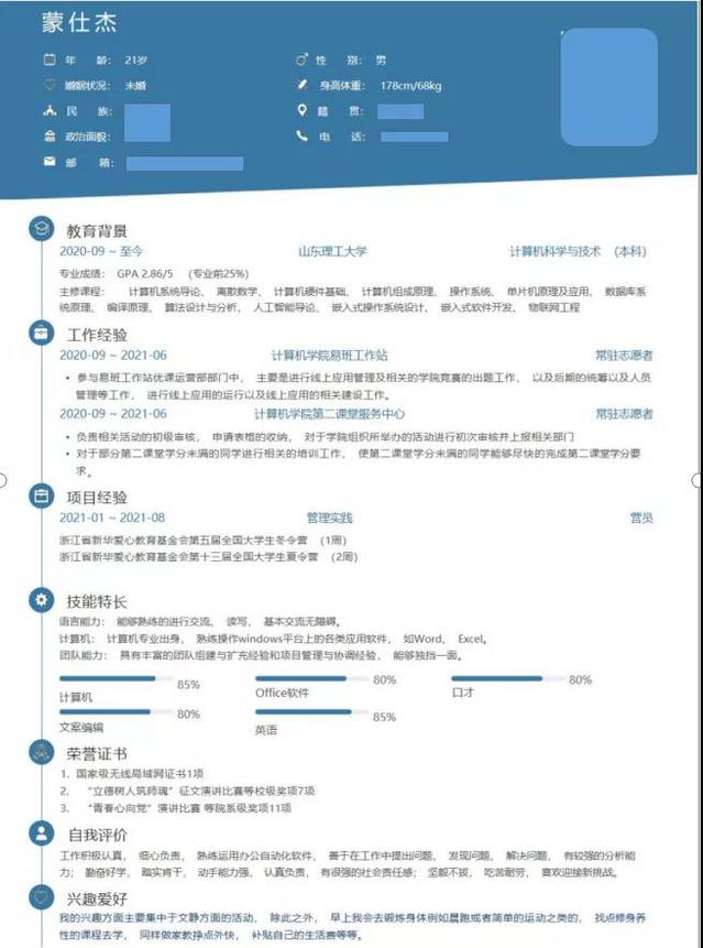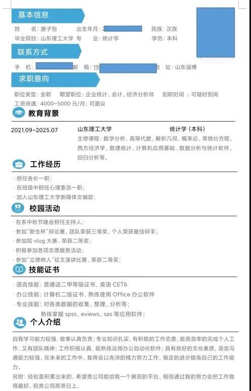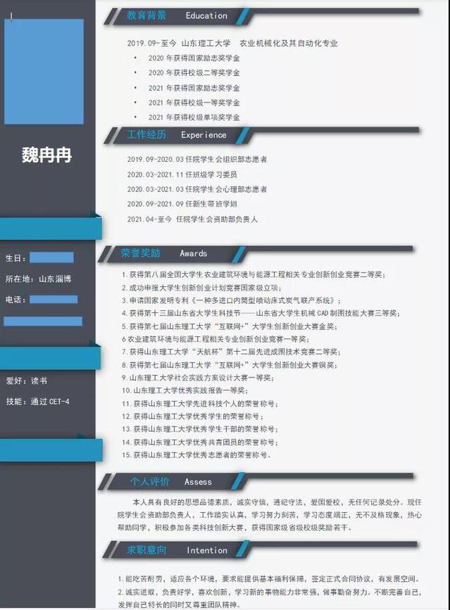 为提高同学们的简历制作水平,增强大学生的创新思维,提高职业素养和求职能力,12月3-10日,我院学生会培训部和歌尔俱乐部联合举办“执笔未来”——简历设计大赛,面向全校学生征集优秀简历作品。 比赛中,每位参赛人员提交了精心制作的简历,发挥创新意识,用简历突显自己的专业特长与应聘优势。经过激烈的初审和复审环节,最终评选出一等奖作品两份,二等奖作品四份,三等奖作品六份。