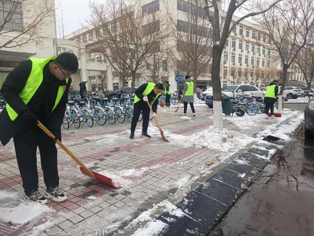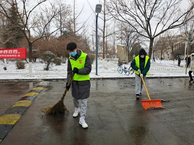 风雪弥漫处,扫雪意暖浓。在那茫茫雪地里,一个又一个绿色的身影,他们用行动温暖着每一个山理工人的心。天虽寒,心却暖。通畅的道路给大家带来的不仅仅是方便和安全,更传递了一份温暖和正能量。