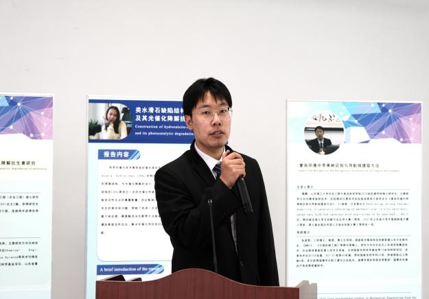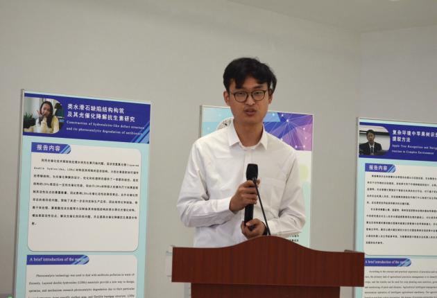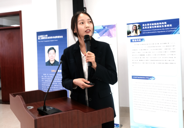 杨军姗汇报的题目是“类水滑石缺陷结构构筑及其光催化降解抗生素研究”,研究内容为LDHs具有一定的光催化性能,但较大的横向尺寸限制其活性位点的暴露数量,影响光催化活性的高效表达。采用化学刻蚀、等离子体处理、聚氨酯泡沫负载等方法制备具有缺陷结构的LDHs,增加表面活性位点,解决光催化剂回收问题。