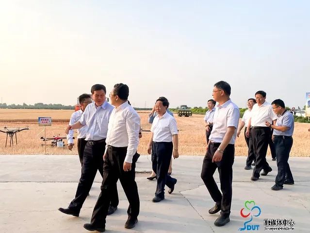6月8日下午,农业农村部党组成员、副部长邓小刚来到位于淄博市临淄区朱台镇的我校生态无人农场,调研夏季小麦机收工作。