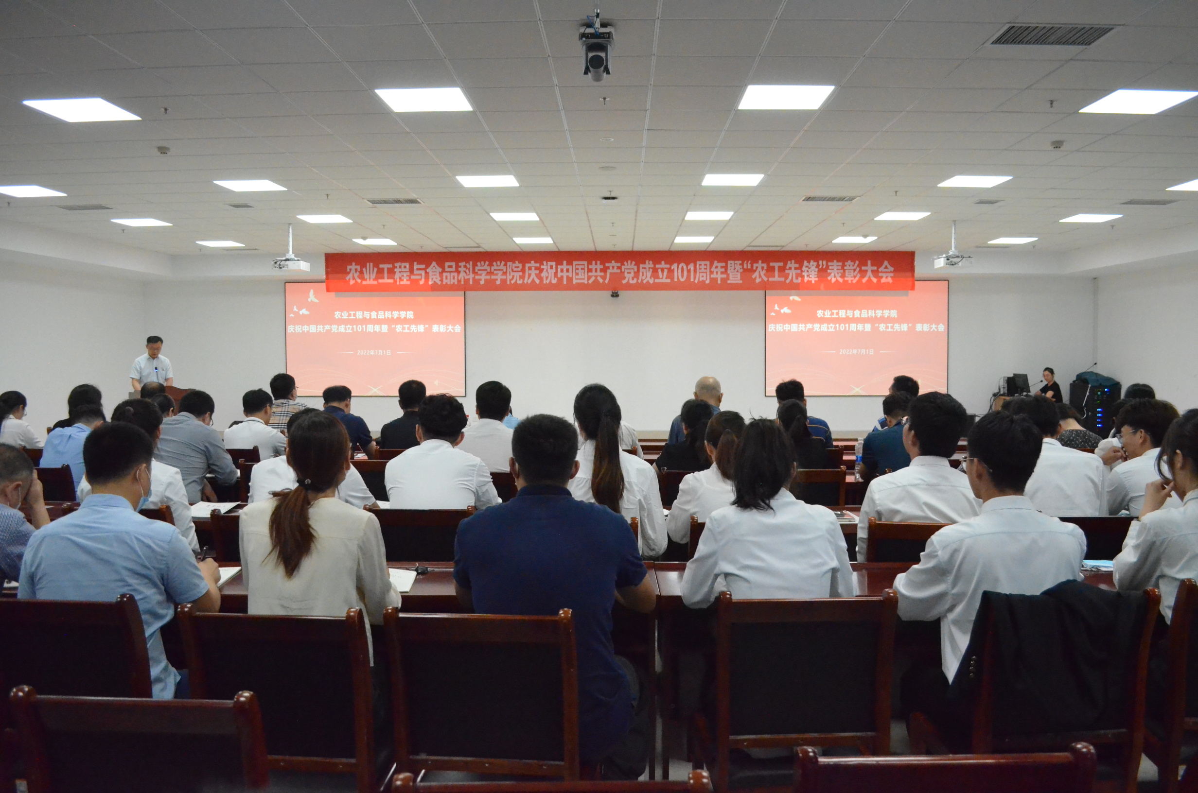 为热烈庆祝中国共产党成立101周年,表彰先进,激励广大党员以更饱满的热情、更务实的作风、更有力的举措,积极投身教育事业,以优异成绩迎接党的二十大召开,7月1日,我院在6号实验楼报告厅召开庆祝中国共产党成立101周年暨“农工先锋”表彰大会。学院领导班子成员、全体教师党员、学生党员代表等参会。学院党委副书记戴洁主持会议。