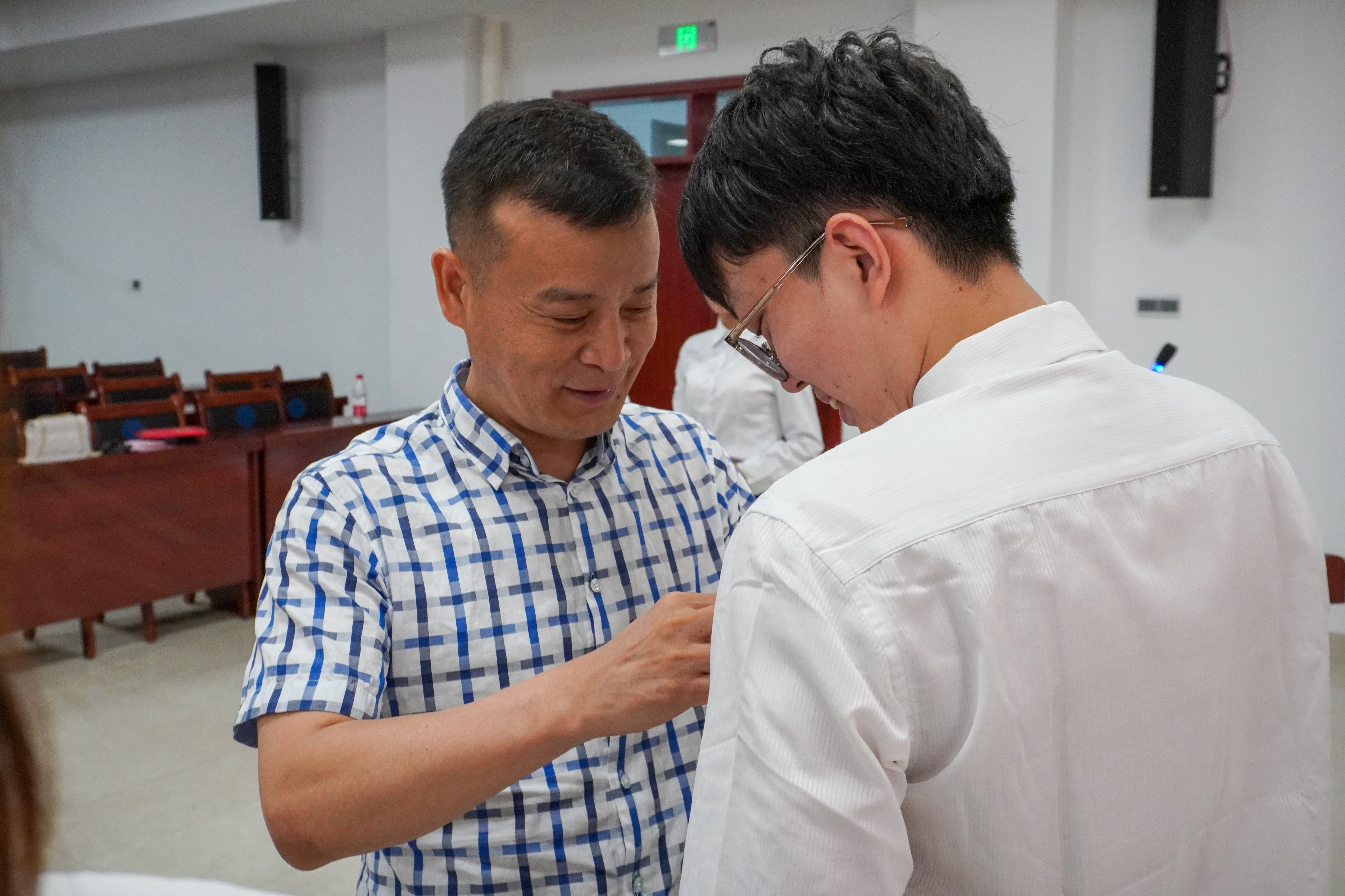 表彰会上还举行了新发展党员入党宣誓仪式,学院班子成员及获得“农工先锋”称号的教师党员为新党员佩戴党徽、发放《党章》,全体师生党员在戴洁领誓下重温了入党誓词。