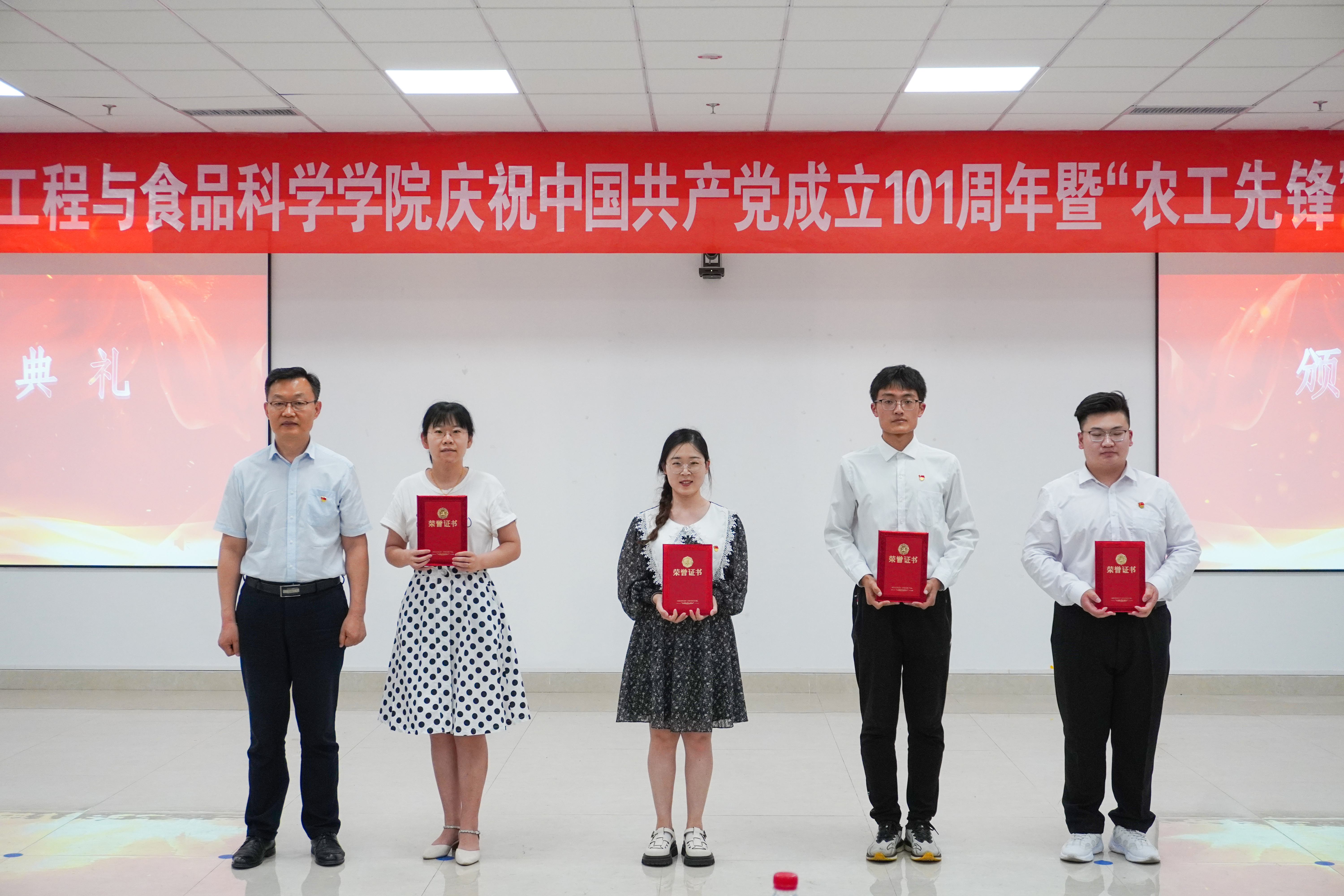学院班子成员为获得“农工先锋”荣誉称号的党支部、共产党员以及疫情期间舍小家、顾大家,全力守护学生健康安全的全体辅导员颁奖。