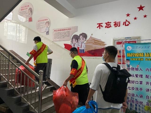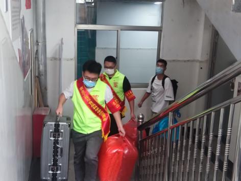 8月28日,学生党员分别在学校门口和新生公寓楼下集合,以饱满的热情等待新生的到来,主动帮助新生搬运行李,让每位离家的学子感受到家人般的温暖和关爱。