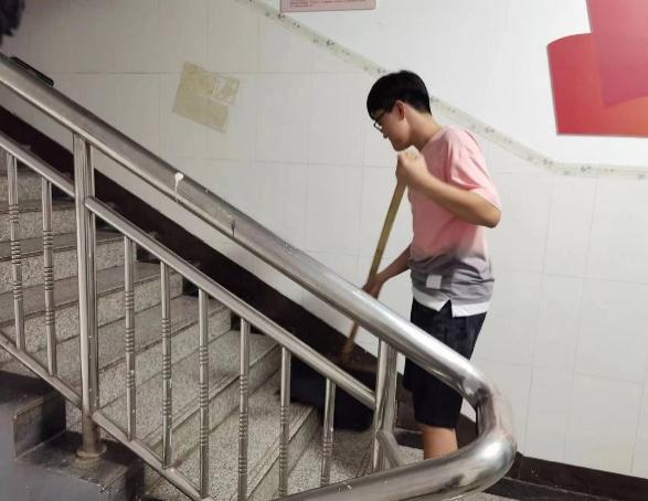 8月25日,学生公寓党团服务中心学生党员对新生公寓走廊卫生进行集中清理,为新生入住提前做好准备,营造温馨、和谐、美丽的公寓环境。