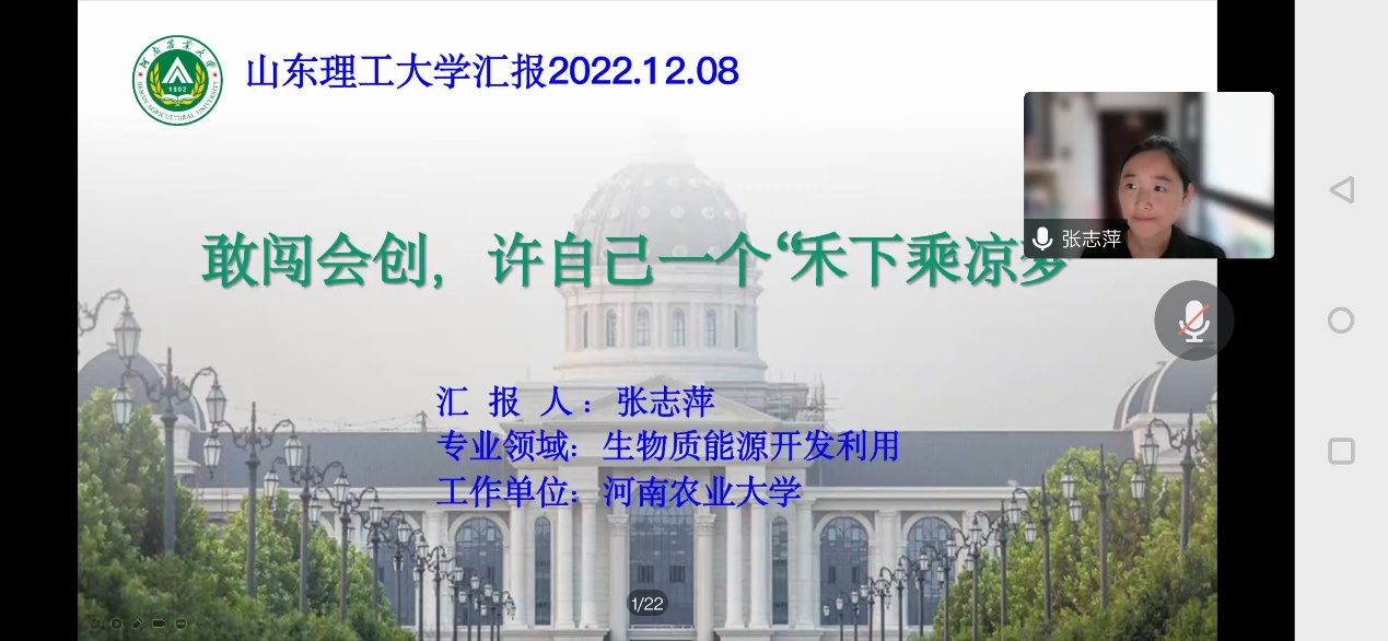 12月8日上午,学院邀请中国农业大学刘志丹教授、河南农业大学张志萍教授线上分别作了题为《碳中和视野下种养结合系统:基于水热转化的新愿景》、《敢闯会创,许自己一个“禾下乘凉梦”》的学术报告,报告会由学院副院长孙霞主持。