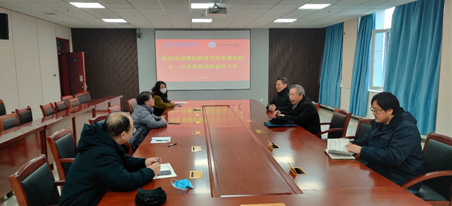 2月17日上午,国际教育学院院长张照录、副院长周国宝一行前来我院调研留学生工作。我院副院长孙霞、院长助理李富军以及有关科室负责人参会。