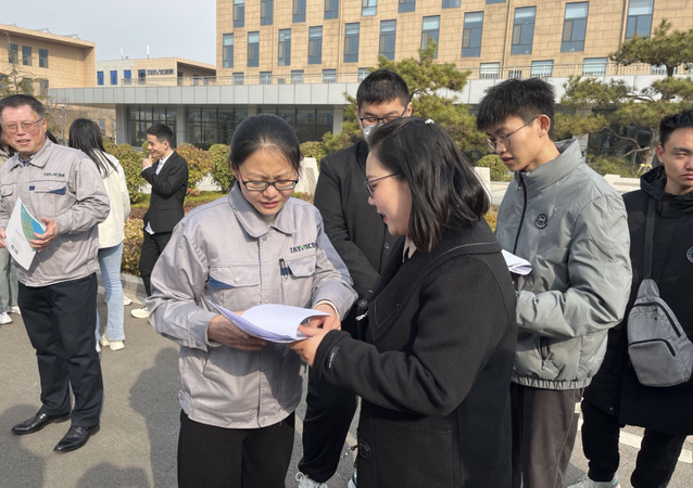 “就业直通车”首先前往山东泰展机电科技股份有限公司,企业常务副总经理胡国厚陪同师生参观企业生产车间工作环境,向师生详细介绍企业发展、生产规模等情况,人力资源部经理都薪介绍企业岗位需求及薪酬待遇等,赵科程向师生解读淄博市人才金政50条,欢迎优秀人才留淄返淄共建淄博。学生积极向工作人员咨询、主动投递简历。