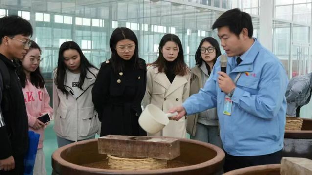 随后,“就业直通车”抵达山东川鹰食品有限责任公司,总经理徐磊带领师生参观企业展厅、酿造房及生产车间,就企业文化、招聘岗位、薪资待遇等向毕业生宣讲。毕业生就业意向明显,主动咨询工作人员岗位晋升渠道、人才培养等信息,企业表示欢迎优秀毕业生加入。校企双方就企业发展、人才需求、产学研合作等进行了探讨。