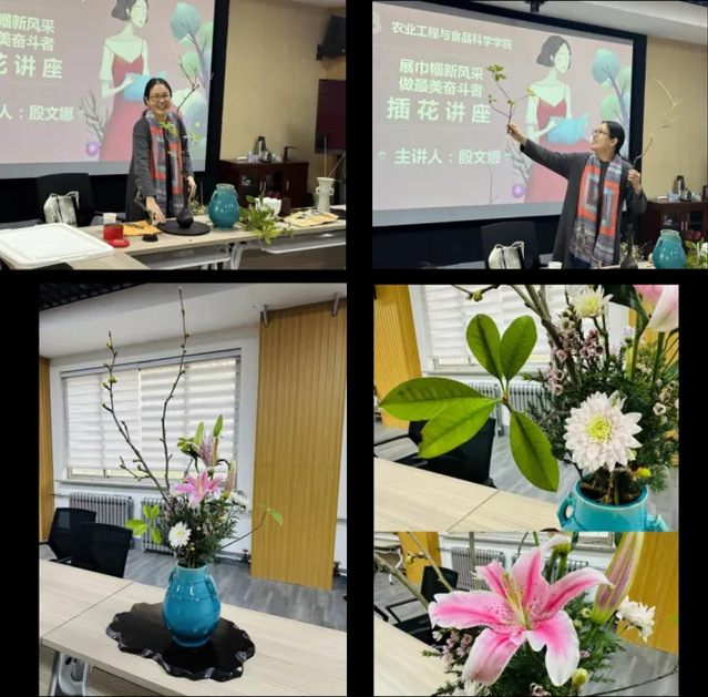 为丰富女教职工精神文化生活,体会传统插花艺术的雅趣之美,我院于12教121会议室举办“展巾帼新风采,做最美奋斗者”三八妇女节插花主题讲座。此次讲座由学院研究生工作办公室主任郑彬主持,特别邀请美术学院教师殷文娜主讲,我院部分女教职工参加。