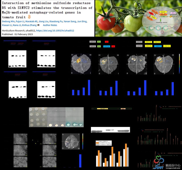 目前,该研究相关成果以“Interaction of methionine sulfoxide reductase B5 with SlMYC2 stimulates the transcription of MeJA-mediated autophagy-related genes in tomato fruit”为题发表在《园艺研究》(Horticulture Research)。Horticulture Research主要刊载园艺作物的基础和理论研究,入选中国科技期刊卓越行动计划领军类期刊,位于园艺一区(第1/36名),植物科学一区(第16/238名),遗传学一区(第18/175名)。我校为本论文的第一作者单位,我校农业工程博士研究生闵德栋为第一作者,张新华教授为通讯作者。