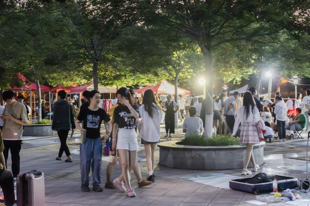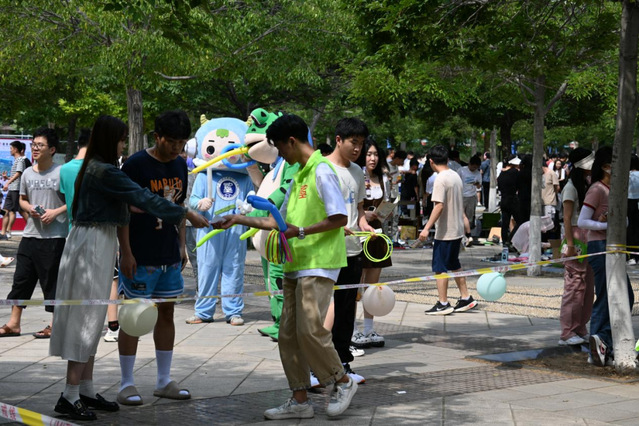 学院志愿者们积极上前帮忙,引导同学到指定地点摆摊。同时,志愿者也在现场一直维持秩序,疏导交通,保持着市场秩序热闹而不混乱。