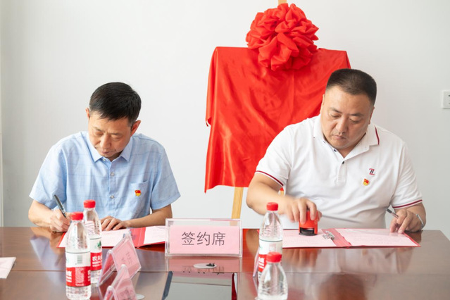 徐启达与艾军代表双方签订党委共建协议并为“党建共建基地”揭牌。