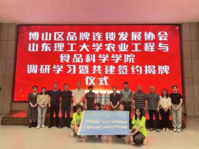 下午,我院一行在博山区人大副主任、博山区餐饮专班主任夏艳华、博山区品牌连锁发展协会会长王振及相关负责人的带领下参观了博山区老颜神古街、鲁菜博物馆,看望了社会实践学生并召开座谈会议。王振主要介绍了博山区品牌连锁发展协会和淄博老颜神餐饮文化发展的情况。夏艳华从博山区的发展历史、文化品牌、产业优势等方面进行了简要介绍,并表示通过此次社会实践共建,加快形成“引育用留”人才服务体系,共同将博山区文化优势转化为产业优势,打造更多文化品牌。赵新河表示预制菜是博山区特有的产业优势,希望以预制菜为突破口加强我院食品系与博山区的合作,也希望同学们运用现代食品技术开发出更多喜闻乐见的产品。姜素锦谈到,希望以社会实践共建为契机,持续加强联动合作,互相借鉴学习,实现优势互补,努力在人才培养和助力乡村振兴上取得更多实效。随后,双方代表签订社会实践基地共建协议,为社会实践基地揭牌。