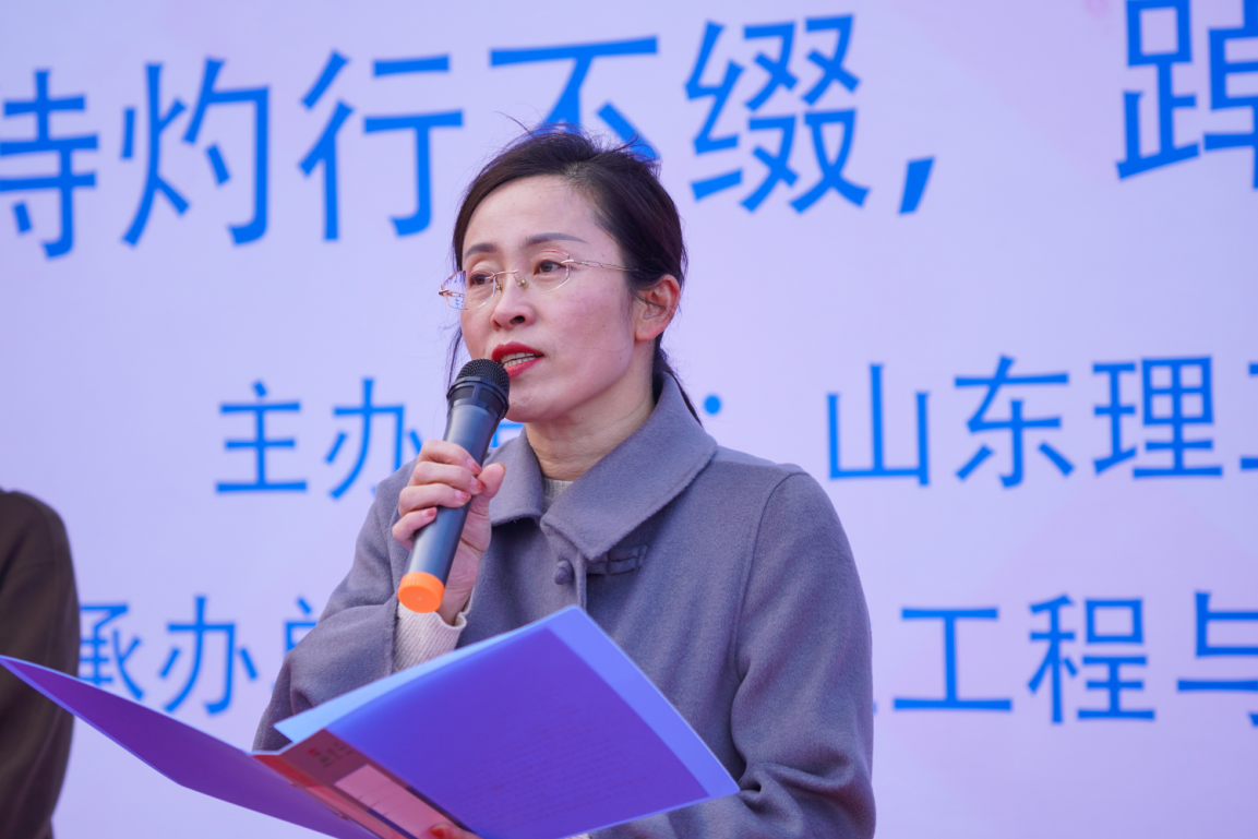 开幕式上,姜素锦致开幕辞。她希望各位同学充分热身、安全第一,在此次活动中增强体魄,发扬团结向上、努力拼搏的精神,全面展现山理工学子的豪迈与坚毅。最后,周蕾宣布“William威廉英国2023年校园吉尼斯开幕”。