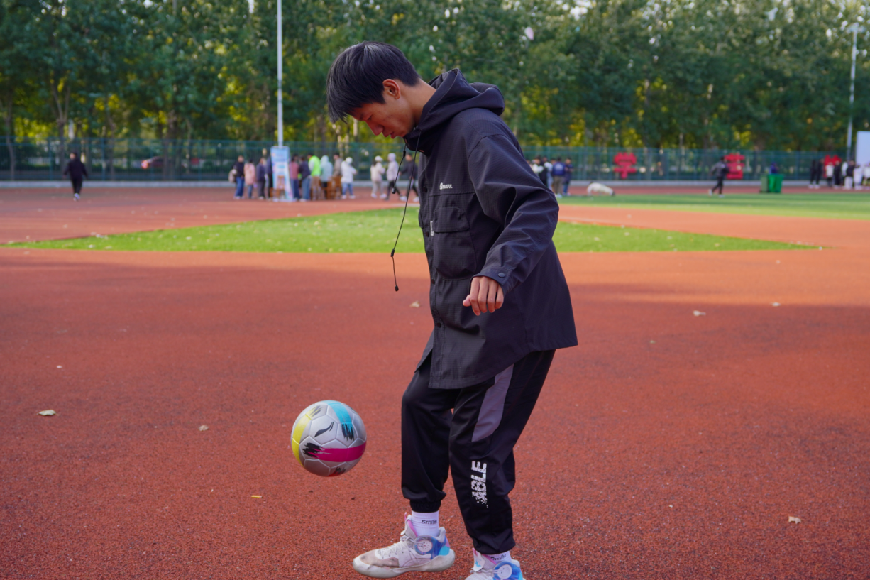 此次校园吉尼斯共25个项目,其中包含墨中夹弹珠、疯狂颠足球、摸石过河等17个单人项目、长腿连线、滚雪球等4个多人项目以及十人九足、极速穿梭等4个团体任务。各项目极具趣味性,同学们情绪高昂,现场氛围热烈。“摸石过河”项目中,同学们各显神通,在保证脚不落地的情况下冲向终点;在“长腿连线”项目中,每个成员为了每一厘米突破不断挑战自己的极限;“十人九足”团队比赛中,同学们发扬团队精神,用彼此的协调配合换来团队的胜利;“极速穿梭”项目中,各学院代表队通力配合、口号响亮、奋力奔跑,为团队荣誉而战!