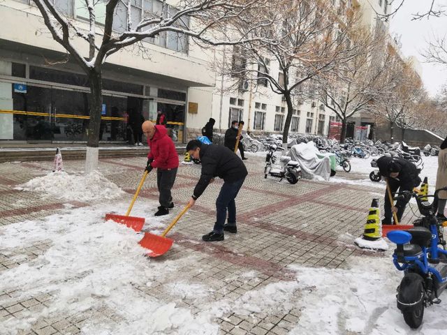 受冷空气影响,淄博市大降温,狂风裹挟着细雪,横扫山理工的校园。“不知庭霰今朝落,疑是林花昨夜开。”同学们欣赏雪景的同时也纷纷表示在结冰的路面上学会了“滑铲”,道路积雪积冰对师生的出行带来了诸多不便。12月15日,农工学院领导班子成员、部分行政人员及学生会、党团服务中心学生志愿者积极投入到扫雪除冰工作,保障师生出行安全和教学工作正常运行。