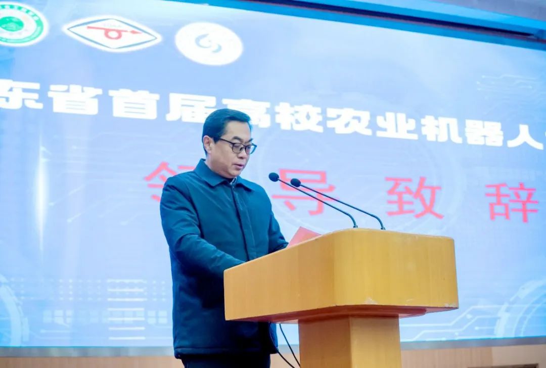 王丰勇代表山东省农业农村厅致辞,他表示农业机械已成为农业生产和应急救灾的主力军,全球科技创新正处于空前活跃的时期,本次高校农业机器人创新大赛因时而动、顺势而为,对推动山东省高等院校、农业智能装备工程领域创新创业人才培养,具有十分重要的意义。