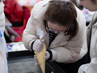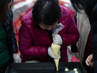 现场香气四溢,充满了温馨的氛围。参与活动的女教职工与学生们专注地聆听完范师傅讲解的步骤及技巧后,大家情绪高涨,纷纷拿起工具制作泡芙与曲奇,她们全神贯注地握着裱花袋,轻轻一挤,一个个精致小巧的泡芙与曲奇饼干雏形便出现在烤盘上,经统一烘烤过后,一款款造型各异的专属糕点新鲜出炉,大家迫不及待地围上前来欣赏,一时间欢声笑语弥漫在整个现场。![]()