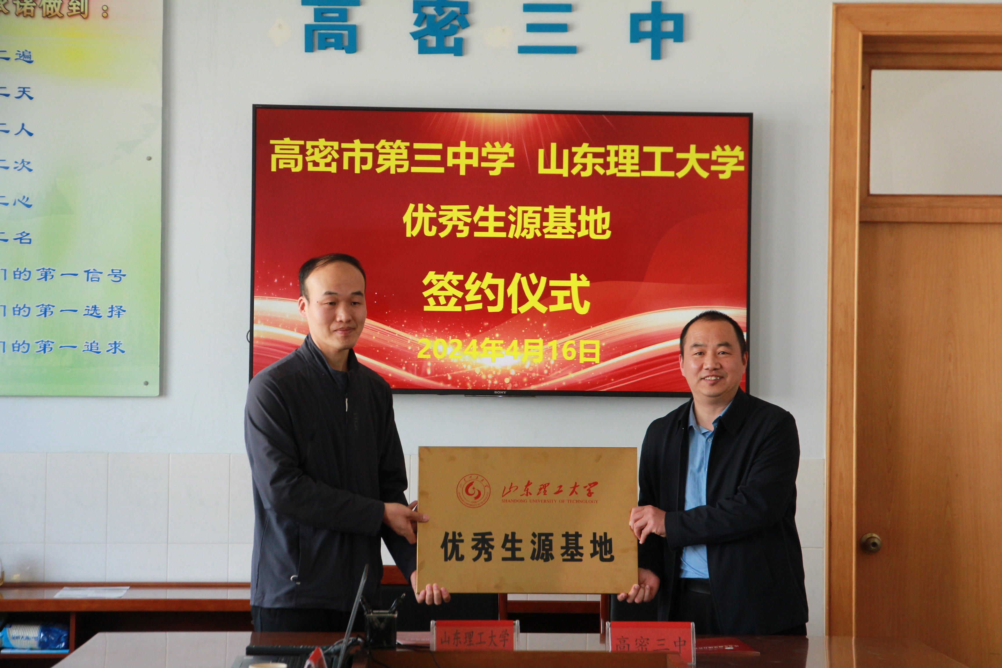 分别与高密第三中学、高密第四中学和高密第五中学负责人深入交流,并举行了“优秀生源基地”签约授牌仪式。