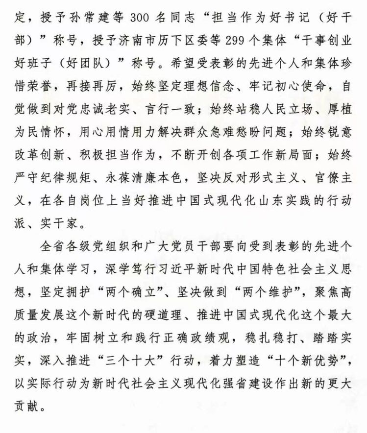 此次表彰,省委组织部共授予全省300名同志“担当作为好书记(好干部)”称号,其中高校共14人。2018年以来全省“担当作为好书记(好干部)”“干事创业好班子(好团队)”共表彰3次,我校继2018年新型聚氨酯材料研究院获评全省“干事创业好团队”、2021年张存山获评全省“担当作为好干部”之后,学校再次获此殊荣。