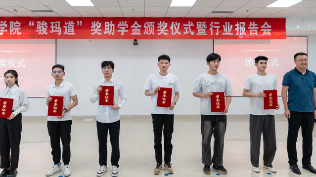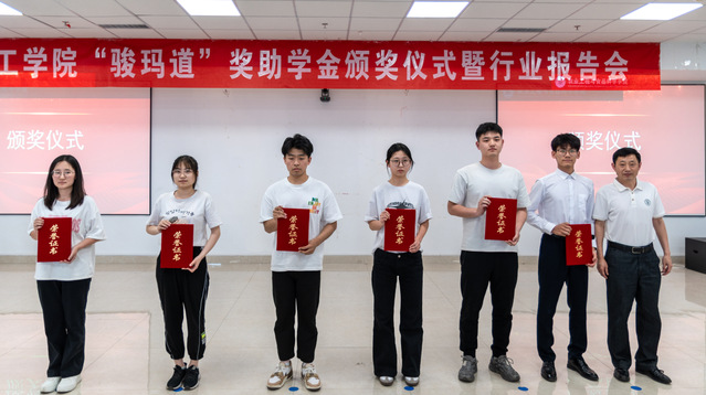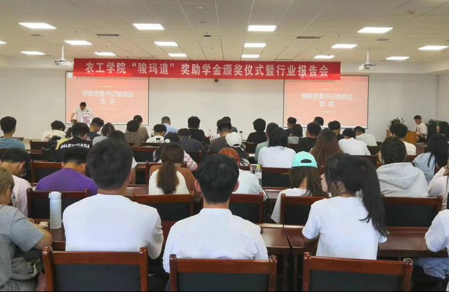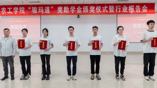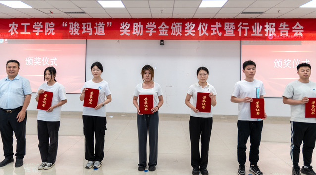李志合宣读农工学院“骏玛道”奖助学金获奖名单,与会嘉宾为获奖集体和学生代表颁发荣誉证书。
