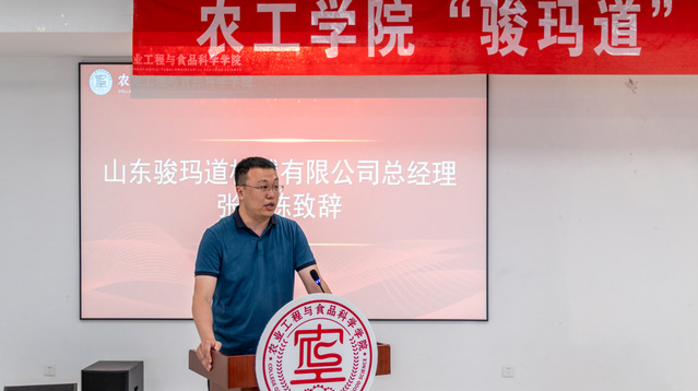 张玉栋对山东骏玛道机械有限公司的企业文化、优势产品、发展成就、农机行业发展现状及趋势等进行详细介绍,对学院为山东骏玛道机械有限公司输送的优秀人才和提供的技术支持表达了感谢。他表示,希望校企双方继续加深产学研合作,并鼓励农工学子提升专业自信,开展实习实践,未来为国家农机事业贡献智慧和力量。
