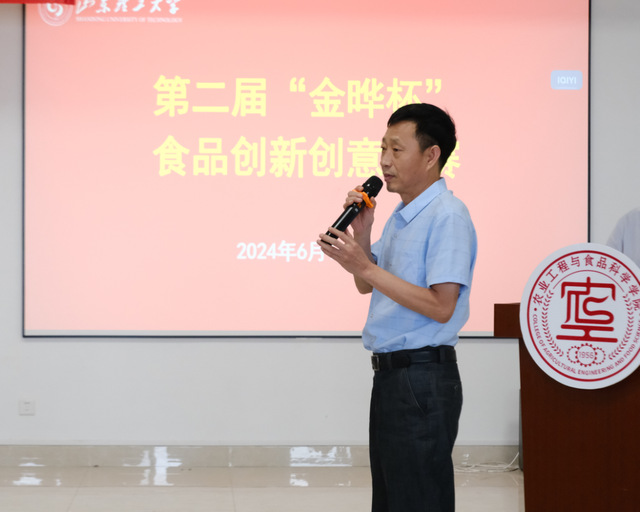 6月11日,第二届“金晔杯”食品创新创意大赛在6-1104报告厅顺利举办。学院党委书记徐启达、执行院长李志合,山东金晔农法食品有限公司人力资源总监高延娟、研发总监刘位刚,学校服务社会办公室主任刘海涛和我院教师代表出席,大赛由郭衍银教授主持。