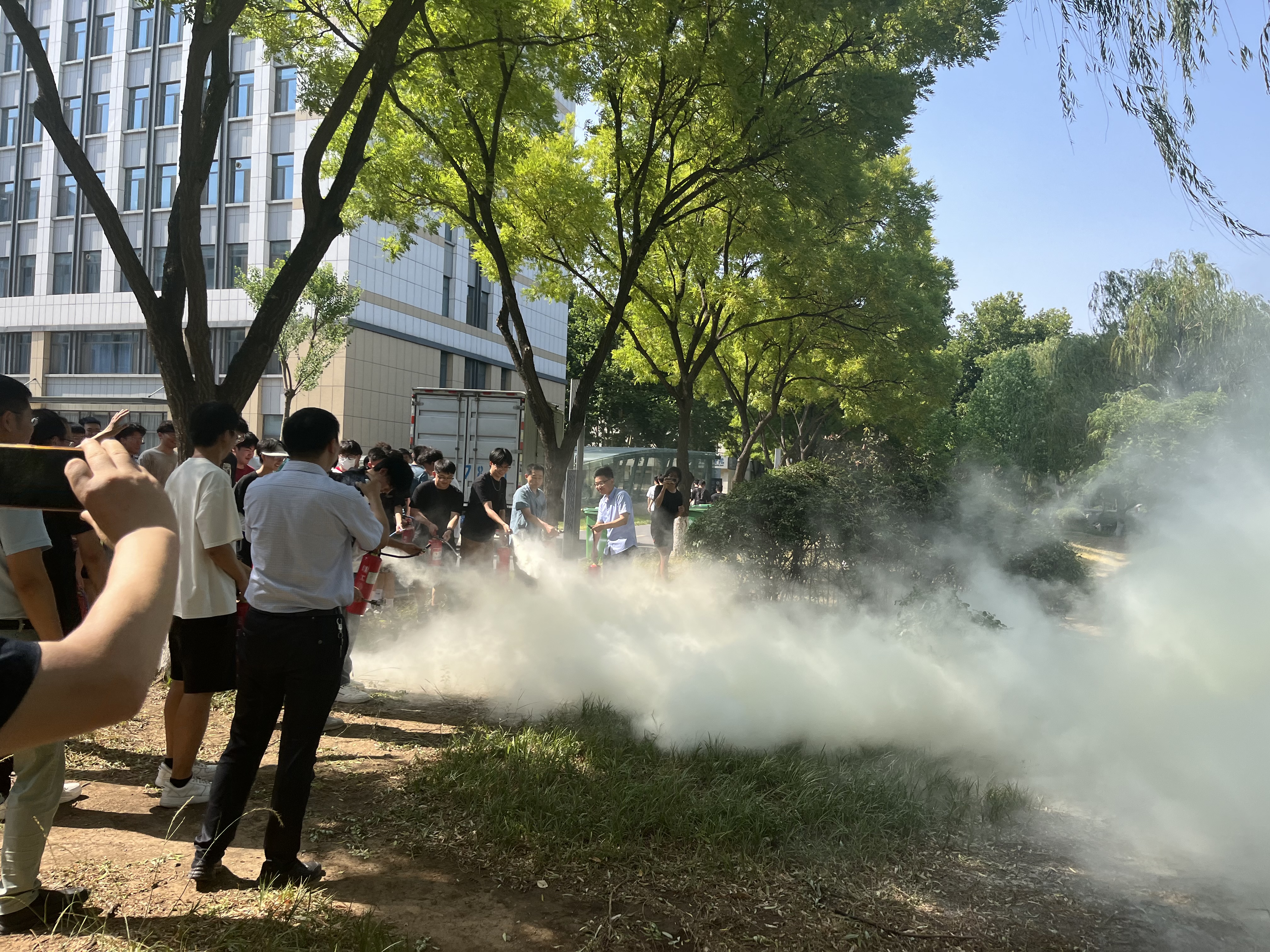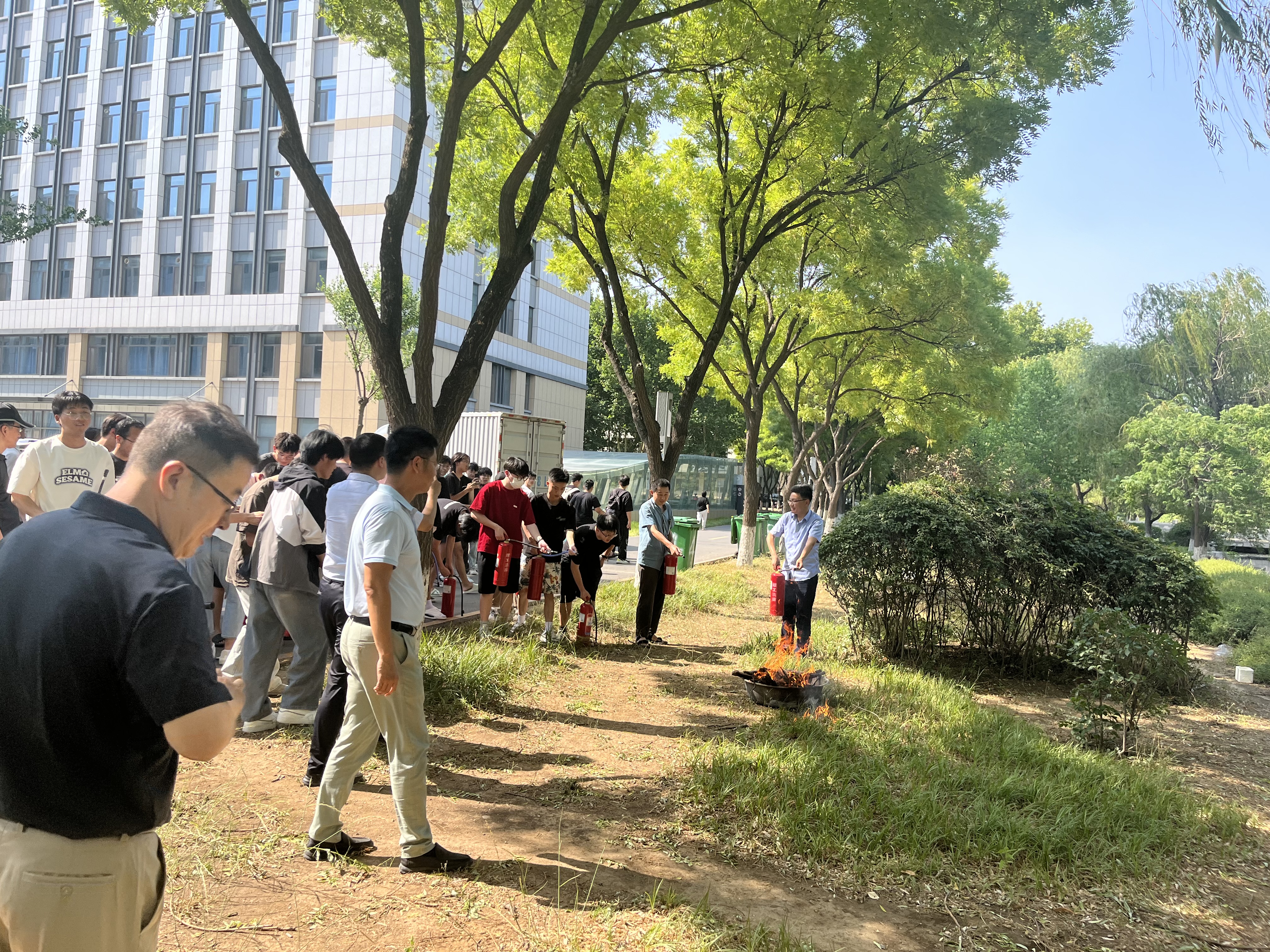 为增强广大师生防灾减灾和消防意识,提高师生应急能力和避险自救能力,6月13日下午,我院与交通与车辆工程学院、电气与电子工程学院在6号实验楼联合举行消防演练培训,特邀安全保卫处左敏老师为学院师生讲授消防、灭火知识,现场指导灭火技巧,学院安全负责人、实验人员、科研教师及全体研究生参加培训活动。