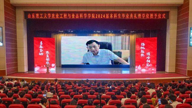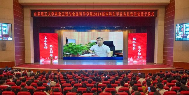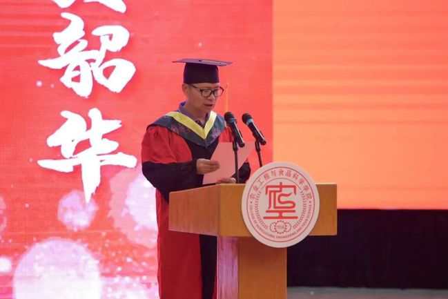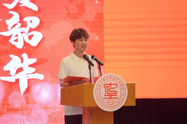 食品2002班吴昊东作为毕业生代表发言,回顾了四年里与同频共振的挚友、兢兢业业的老师、蒸蒸日上的学院互相见证成长的故事,表达了对母校母院的衷心感谢,也代表全体毕业生郑重承诺作为山理工校友必将牢记校训,不忘恩师教诲、不负学院期盼,在专业领域深耕精研,以强农兴农为使命,为中国农业现代化建设贡献青春力量。