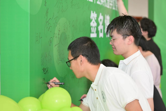 学院围绕毕业主题和专业特色精心筹划布置,为毕业生提供满满仪式感。典礼开始前,全体毕业生在签名墙上写下名字,与学院郑重告别。他们在打卡处拍照留念,留下与朝夕相处的老师朋友最灿烂的合照。随后毕业生们共同观看毕业纪念片,熟悉的画面、一起笑过哭过的过往、老师家长的祝福,让每一位毕业生重拾青春记忆,现场气氛温馨热烈。