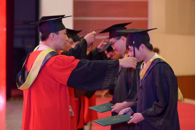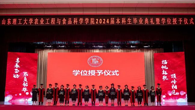 学院学位评定分委会委员和教师代表为2024届本科毕业生授予学位,拨穗并合影留念。